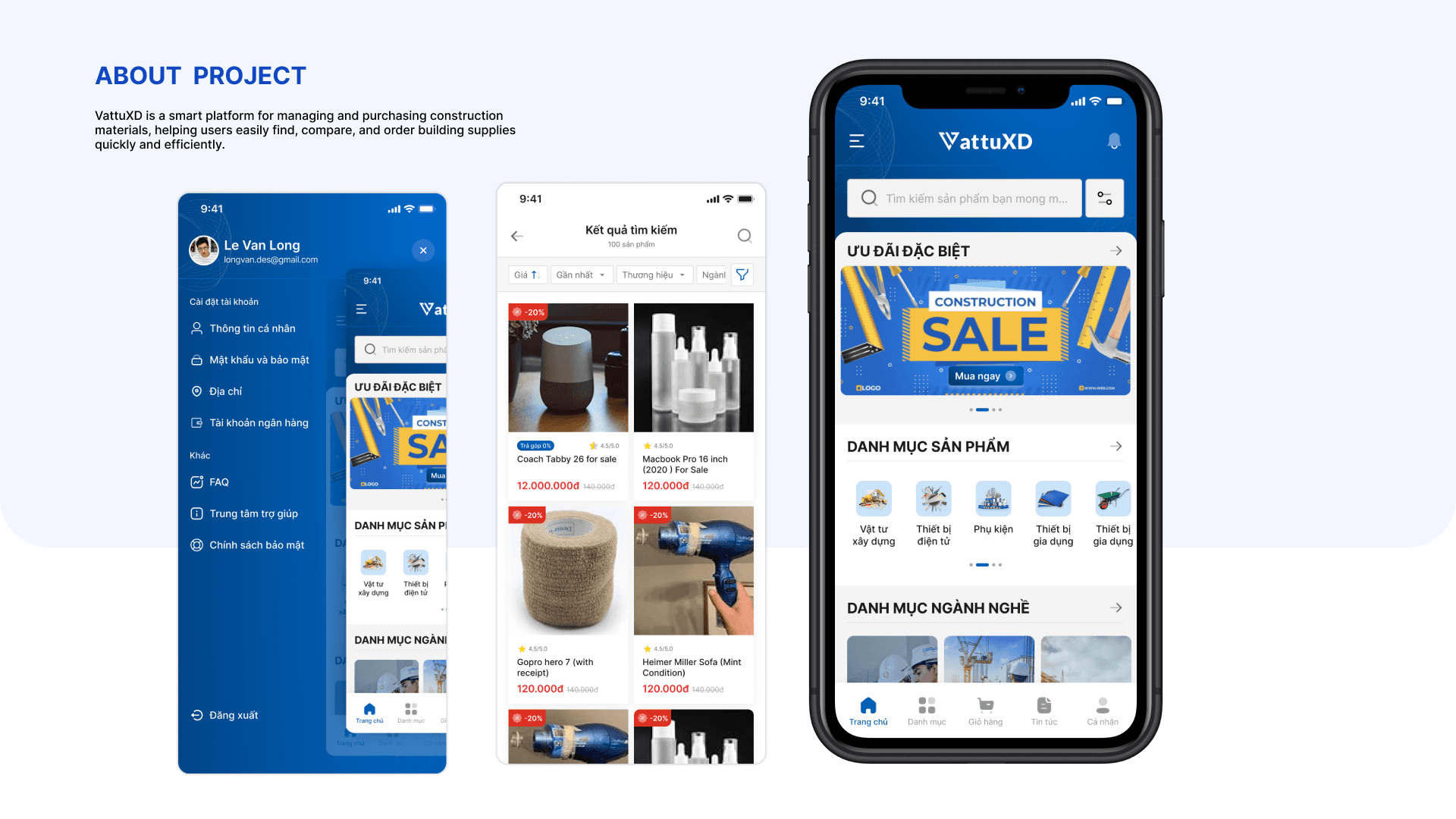 VattuXD is an ecommerce app specializing in construction materials. It connects contractors, suppliers, and construction teams, making it easy to search, order, and manage materials efficiently.